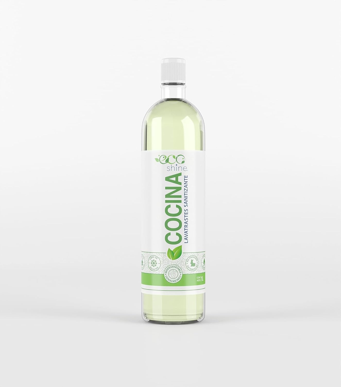 Lava trastes liquido concentrado biodegradable ECO SHINE Aroma Limón de 1 lt, con alta espuma elimina grasa.