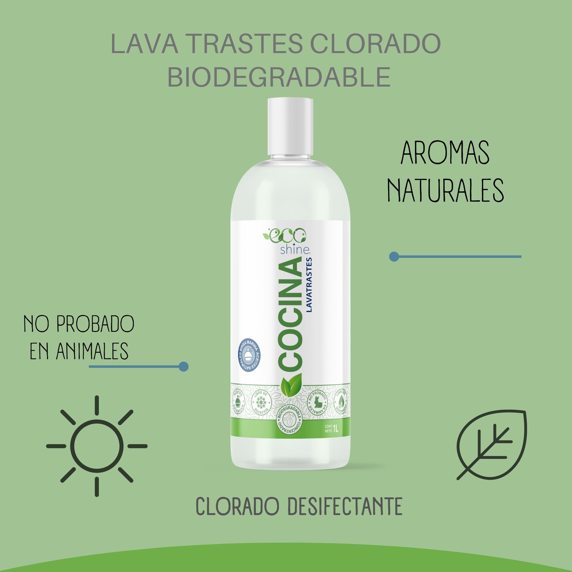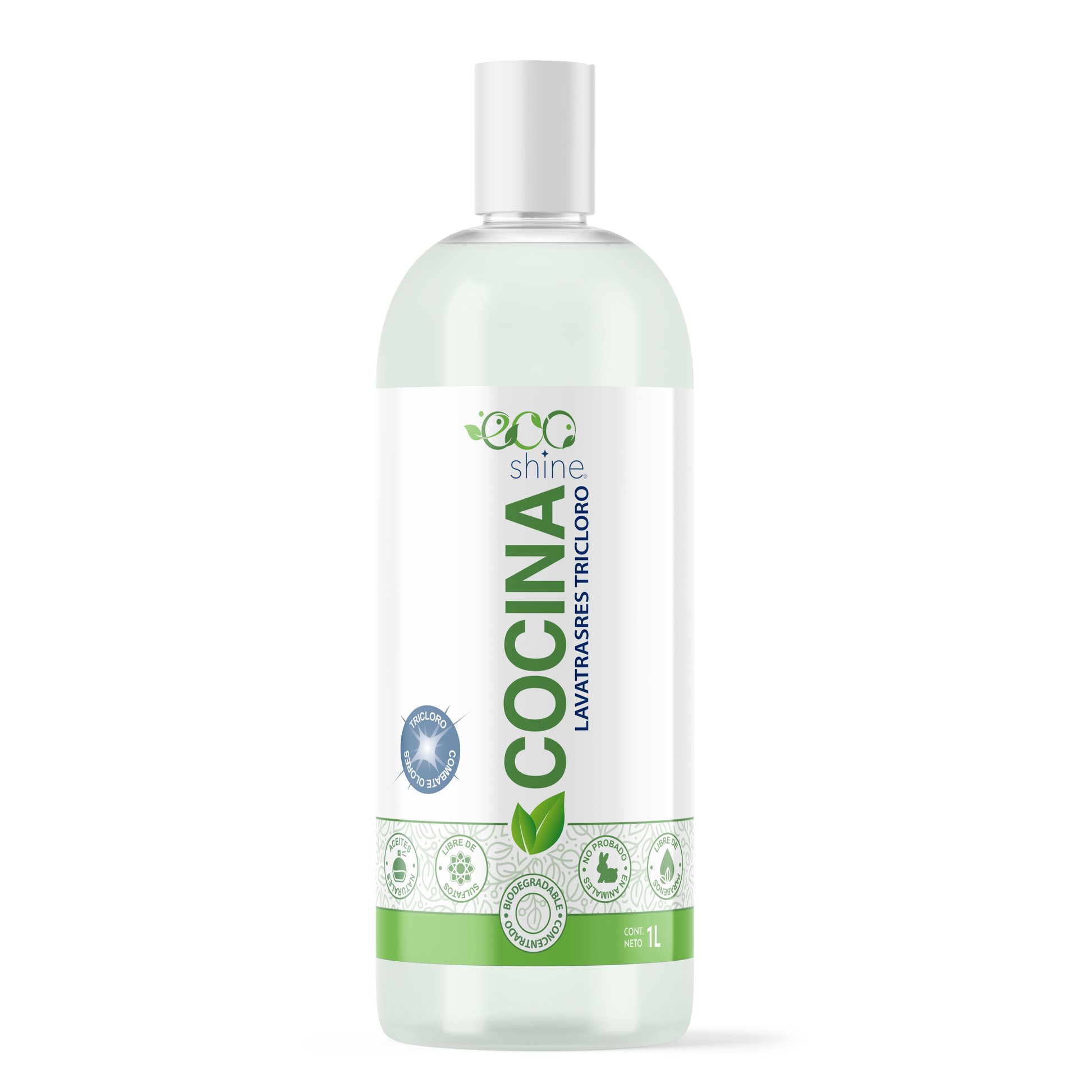 Lava trastes liquido concentrado biodegradable ECO SHINE aroma neutro de 1 lt, con alta espuma elimina grasa.