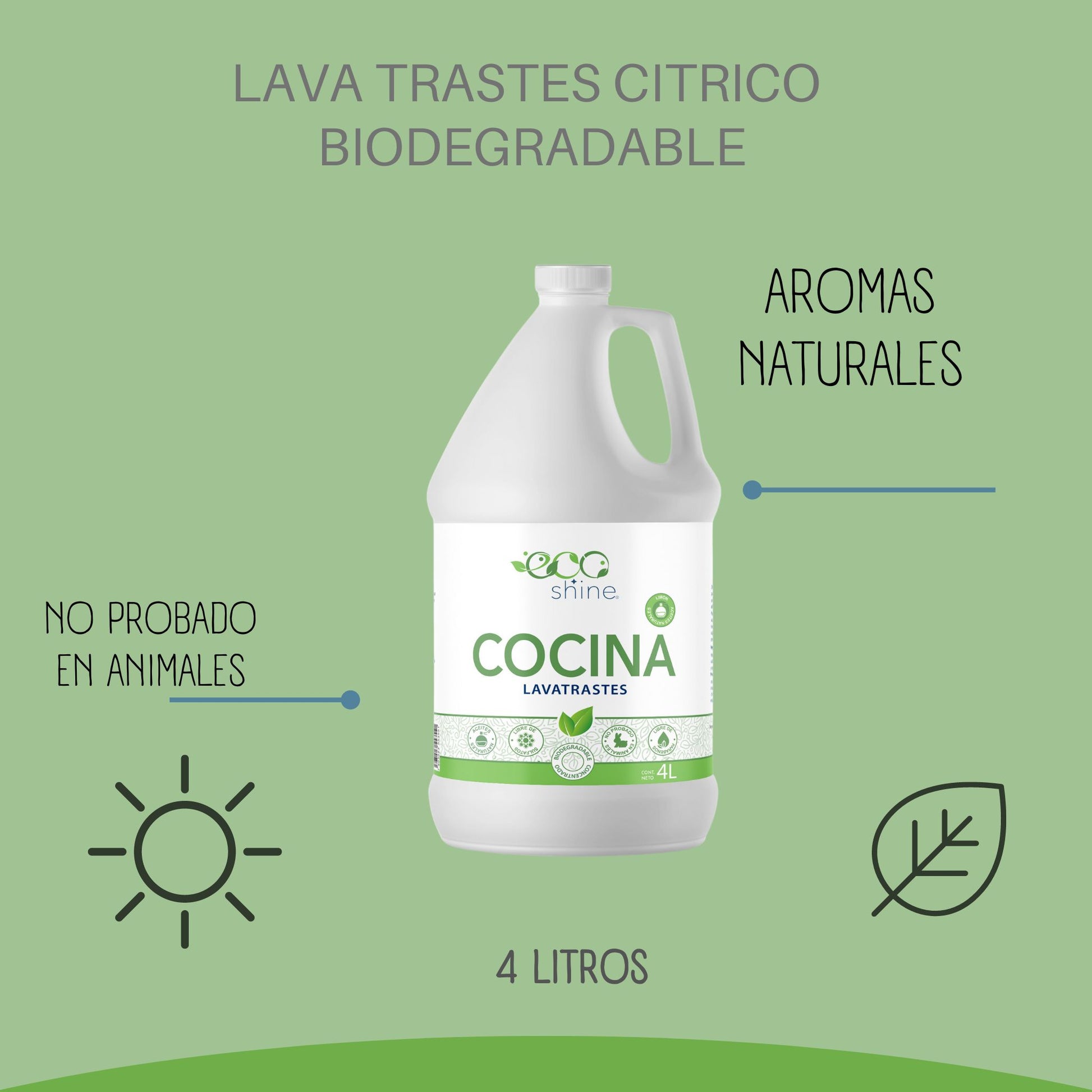 La cocina es el corazón del hogar y merece un cuidado excepcional. El Lavatrastes de Cocina EcoShine, presentado en un conveniente envase de 4 litros, ofrece una solución potente y sostenible para tus utensilios de cocina. No sólo se deshace de la grasa y la suciedad, sino que también respeta y protege la integridad de cada plato, sartén y cubierto, asegurando que lo que nutre a tu familia esté impecablemente limpio y seguro.